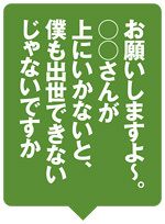 「お願いしますよ~。○○さんが上にいかないとポストが詰まって僕も出世できないじゃないですか」