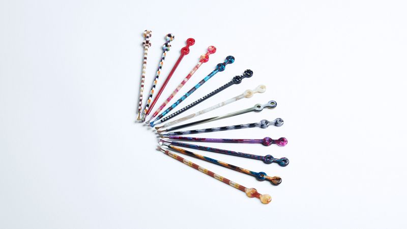 まず、キッソオという社名は聞いたことがありませんでした。資料に所在地が鯖江と書かれていたので、きっと眼鏡の商品を持ち込んでくるのだろうと思いきや、同社のディレクターである熊本雄馬さん(当時33歳)が見せてくれたのは、眼鏡のフレームの材料であるセルロースアセテートという素材でつくったリングやブレスレットでした。