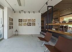 また、この構法を採用することで、都市部のニーズに応えるべく、1階部分を店舗や賃貸住宅にして、収益化を図ることも可能。展示場では、1階部分はギャラリー&カフェスペースになっており、ギャラリーでは、常設展や企画展が行なわれている。6月24日までは、スペインの現代アーティスト、ジャウマ・アミゴー展を開催中。ギャラリーを鑑賞するだけでも訪れる価値があるだろう。