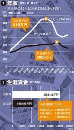 5000万人余りの全雇用者のうち、3000万人余りが正社員、残り2000万人弱が非正規で、正社員が減り非正規が増える構図は今後も変わりそうもない。肝いりのアベノミクスでも、その傾向に歯止めをかけるのは簡単ではない。