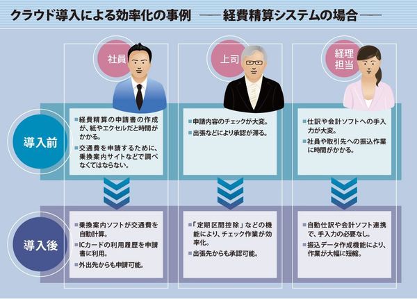 では、そうしたアナログな業務状況のどこに問題があるのか。例えば、営業スタッフが交通費を紙やエクセルで申請する場合、申請者は利用した交通機関の運賃を乗換案内サイトなどで調べ、申請書へ書き込むといった手間が発生する。上司や経理担当などの承認者も「申請内容に間違いはないか」「定期区間は控除されているか」といったチェックに多くの時間を取られてしまう。さらに経理担当は、承認された申請書のデータを集計し、別の会計ソフトへ手入力するといった非効率な作業で忙殺される。
