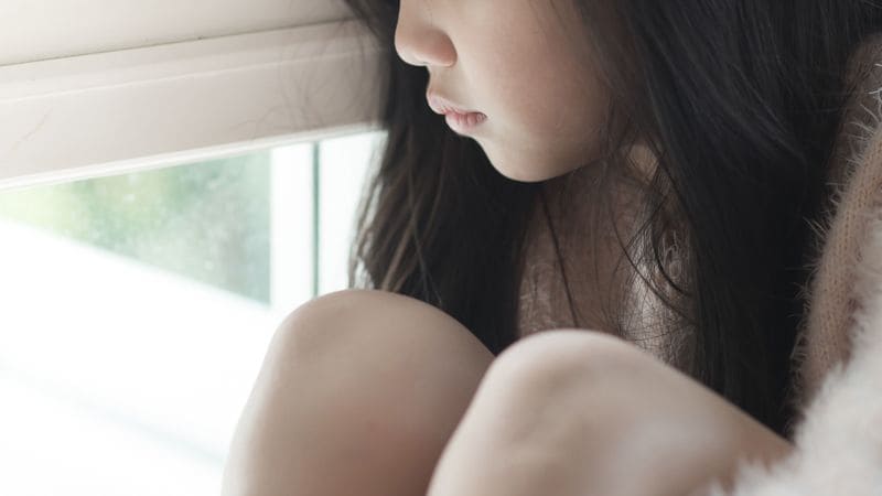 窓際の悲しい女の子