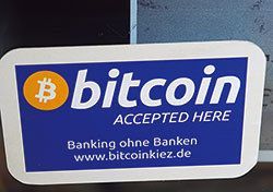 「ビットコインで払えます」と看板を出す店も現れた(ドイツ・ベルリン)。(PANA=写真)