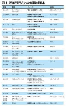 この2つの基準を充たす、直近に刊行された20点が今回の対象書籍です(下表参照。資料収集を行った2013年5月20日からの直近20点。このなかでは碇ともみさんが最も古く2012年8月の刊行、最も新しいのは武野光さんの『就活あるある』で2013年4月の刊行となっています)。著者の職業については文中で紹介はしませんが、実にさまざまな肩書き(各著作の著者紹介欄をもとに作成)をもつ人々が就職対策本を執筆しているのだといえます。