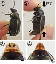 私はゴミダマ素人のため「隙間」を知らないので、今回はファーブル流でいくことに。何か面白い謎がないものかとゴミダマをうっとりと眺めていたところ、外見から雌雄の区別がつかない「謎」に気づいた。解剖して生殖器を見ないと性別判定できないので、これでは雌雄を分けて行う実験ができないではないか。どうにかして生かしたまま性別判定できないものかと舐めるように観察していたところ、ゴミダマがエサのスパゲティを腹一杯食べると、腹部の先から生殖器が少しはみ出すことに気がついた。ゴミダマは、腹がはち切れるほど「食い溜め」し、膨れた内臓が生殖器を押し出したようだ。さらに指で頭を押しこんでやると完全にはみ出した! ゴミダマの「食い意地」を利用すれば、殺さずに性別判定できる。