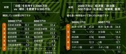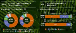 調査概要/調査時期:2012年2月、調査機関:楽天リサーチ、回答者数:600人(2000万円台、500万円台が半数ずつ)。うち男性は92.2%。平均年齢はそれぞれ49.8歳(2000万円台)、43.4歳(500万円台)。