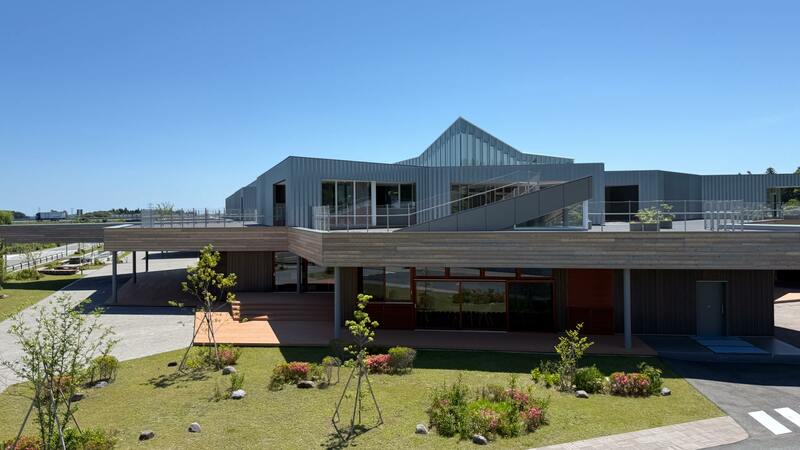 学校の前には戸建ての復興住宅が並び、そこから少し歩を進めると町役場やスーパー、温浴施設などが集まるエリアとなる。すべて2019年以降に作られた施設だという。大熊町は東日本大震災による東京電力福島第一原発事故で、全町民1万1505人が町外への避難生活を余儀なくされた。震災から8年たった2019年に、一部のエリアの避難指示が解除される。学び舎ゆめの森の校舎も、その避難指示が解除された大川原地区に2023年に完成した。ここは、0歳~15歳の子どもたちが通う、国内唯一の認定こども園と義務教育学校、そして学童保育が一体化した学び舎だ。