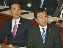 民主党が政権与党だった頃の野田佳彦首相と前原誠司内閣府特命担当大臣。(AFLO=写真)