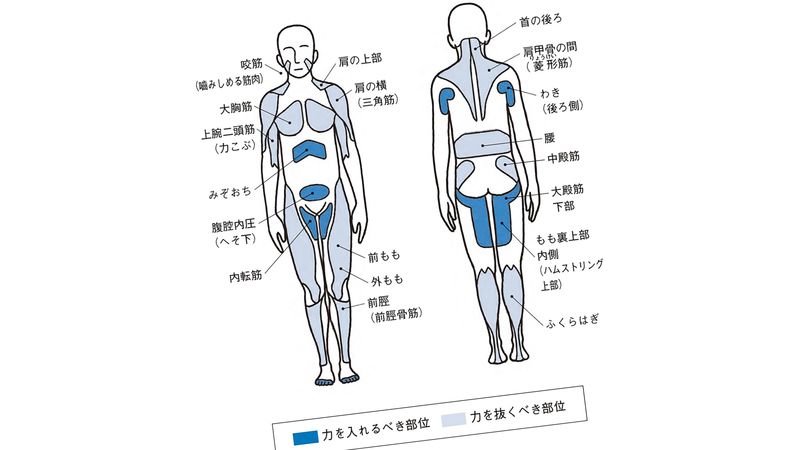 そのためには、「力を入れるべき部位」と「力を抜くべき部位」が、具体的にどの部位を指すのかを知る必要があります。