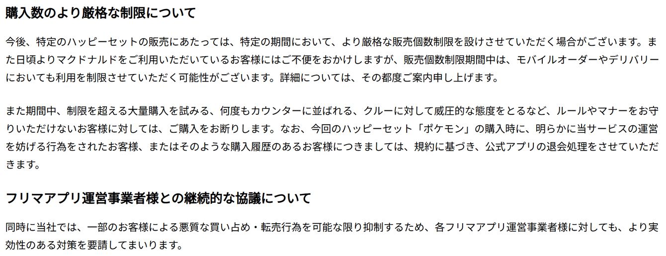 ハッピーセット®販売に関する大切なお知らせと当社の対応について