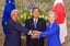令和7年7月23日、石破総理は、総理大臣官邸でEU(欧州連合)のアントニオ・コスタ欧州理事会議長およびウァズラ・フォン・デア・ライエン欧州委員会委員長と第30回定期首脳協議を行いました(出典=