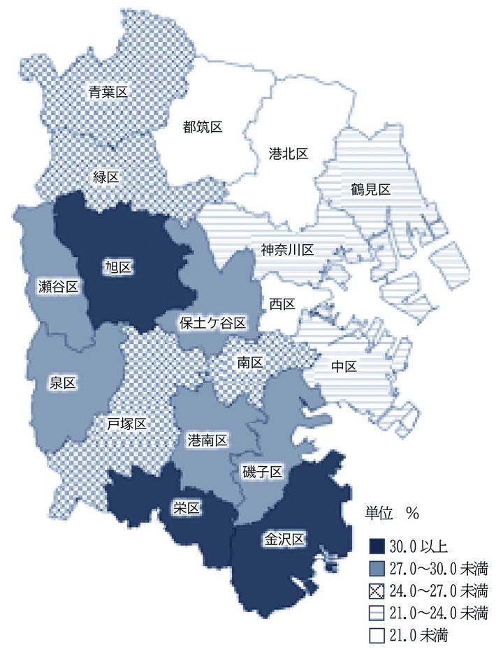 【画像3】高齢化が進んでいる南部や西部の住宅価格は低迷(横浜市「