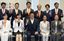 参院選で当選した候補者や所属国会議員らと写真に納まる参政党の神谷宗幣代表(前列中央)=2025年7月22日、国会