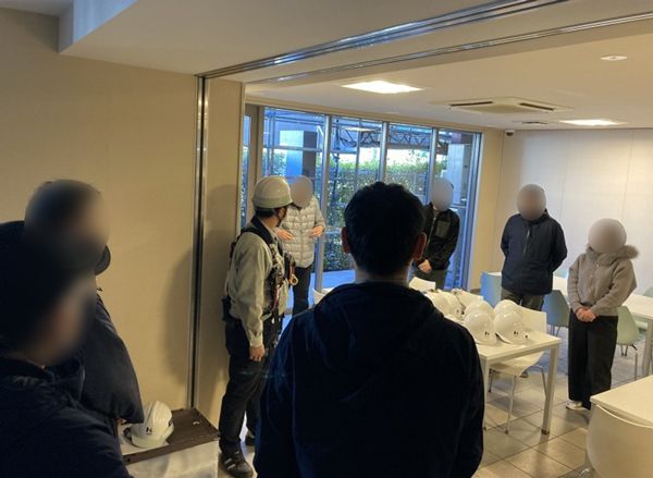 頼れる専門家を日頃から探しておこう(青いワイシャツの男性が建物調査を行う須藤さん)