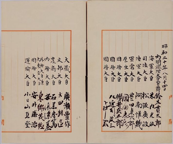 終戦の詔書の国務大臣署名(写真=国立公文書館/PD-Japan-exempt(documents)/