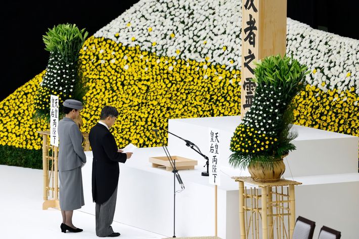全国戦没者追悼式でお言葉を述べられる天皇陛下と皇后さま。2025年8月15日午後、東京都千代田区