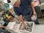 マルカマにてミズカマスの背開きに挑戦中の筆者。魚を常温に長く置くときは氷を当てるように、と上田さんから指導されました。夏場は温度管理が必須です(写真提供=サカナヤマルカマ)