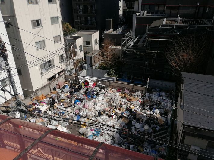 ホームレスの男性に占拠された大阪市西成区の駐車場