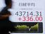 日経平均株価の終値を示すボード=2025年8月18日午後、東京都中央区