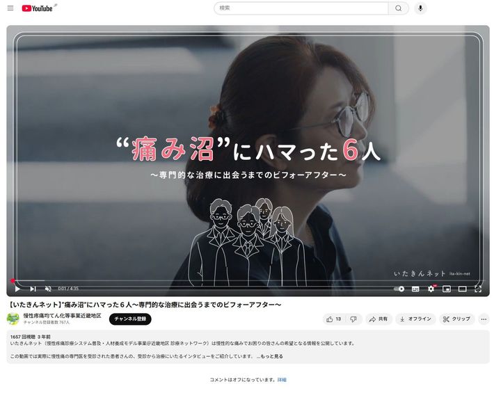 YouTubeチャンネル「慢性疼痛均てん化等事業近畿地区」より