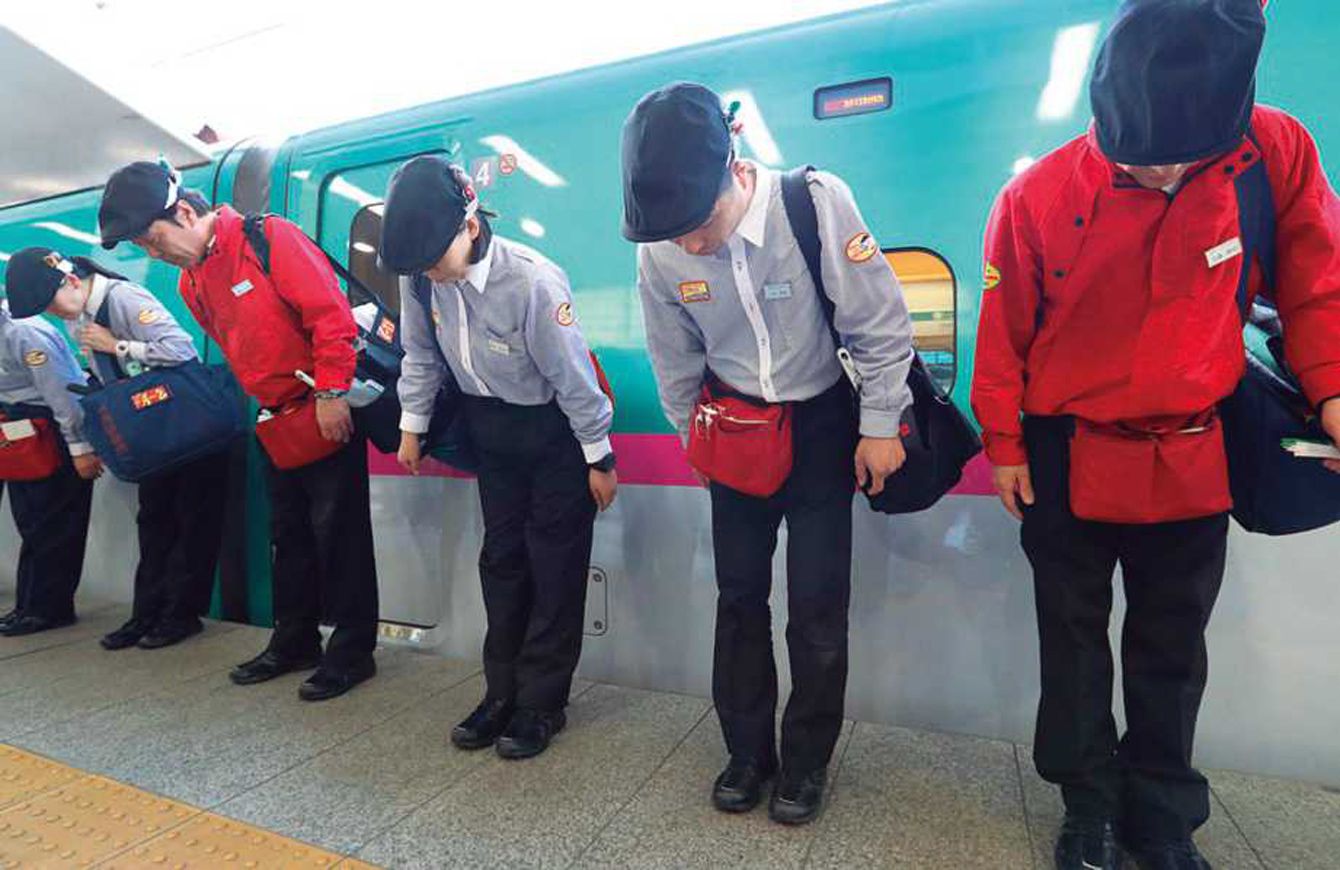 わずか7分で新幹線の全車両の清掃を終わらせるJR東日本テクノハートTESSEIのスタッフ。ハーバードの必修授業で事例として挙げられる。