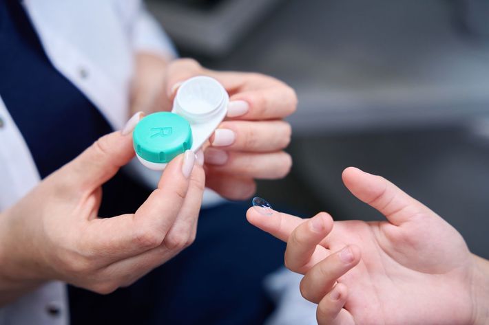 角膜矯正用コンタクトレンズ「メニコンオルソK」。就寝時に装用し、角膜前面を平坦化することで近視を一時的に改善させる特殊なハードコンタクトレンズ。