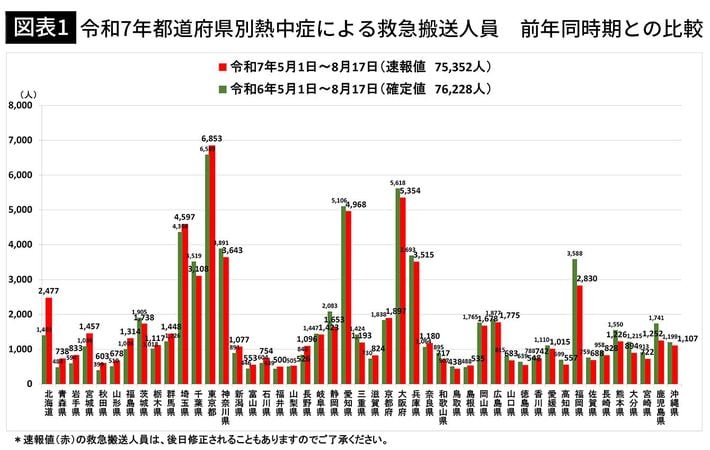 熱中症による救急搬送人員(8月11日~8月17日速報値)