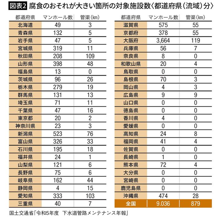 日本列島で道路陥没事故が「1日7件」起きている…「下水道管の腐食リスク」が全国一深刻な都道府県の名前