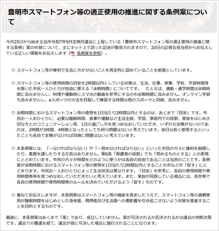 豊明市スマートフォン等の適正使用の推進に関する条例案について