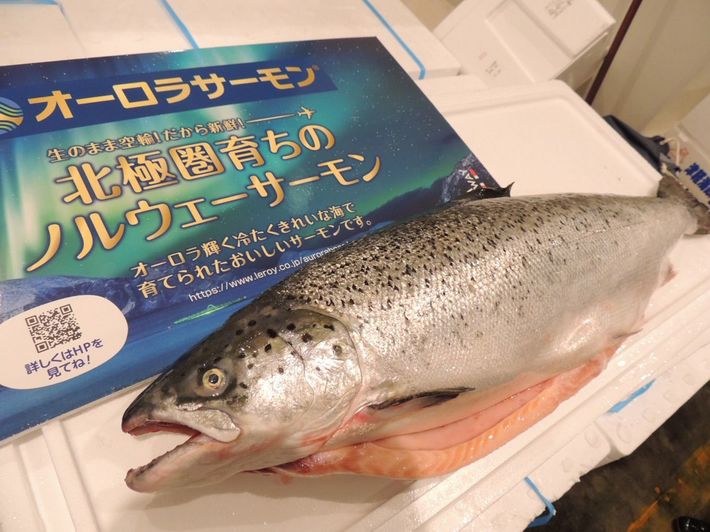 豊洲市場に入荷したノルウェーサーモンのブランド魚