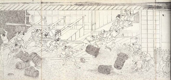 打ちこわしの様子 幕末江戸市中騒動図(伝細谷松茂画/