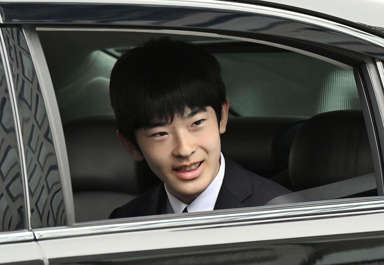 天皇陛下に筑波大入学を報告するため、皇居に入られる秋篠宮家の長男悠仁さま=2025年4月6日、半蔵門