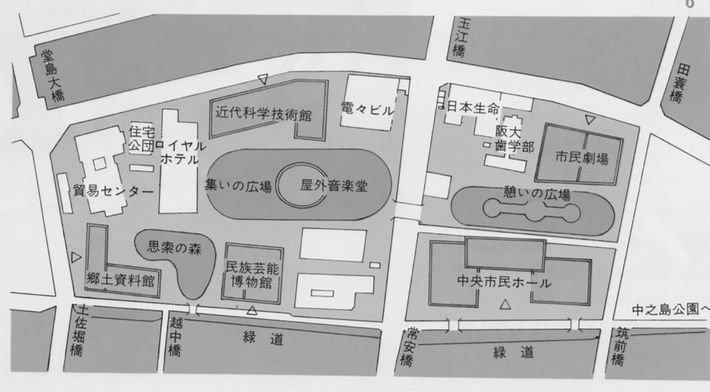 総合文化センター構想地図(『伸びゆく大阪 EXPO'70』) 出所=『