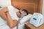 機械で圧力をかけた空気を鼻から気道に送り込み、気道を広げて睡眠中の無呼吸を防止するCPAP療法。機器本体と空気を送るチューブ、鼻に当てるマスクからなり、睡眠中に装着する(写真はイメージ)。