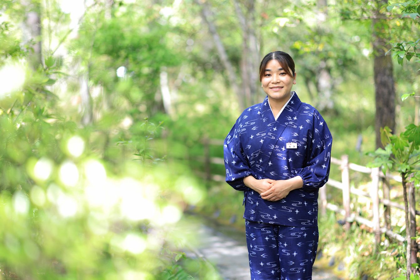 由布院の旅館「玉の湯」で働くネパール人仲居のガレ・マンカラさん。職場では「カラ」を名乗っている
