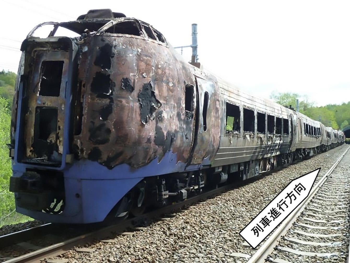 真っ黒に焼け焦げた特急スーパーおおぞらの車両(写真=運輸安全委員会/CC-BY-4.0/