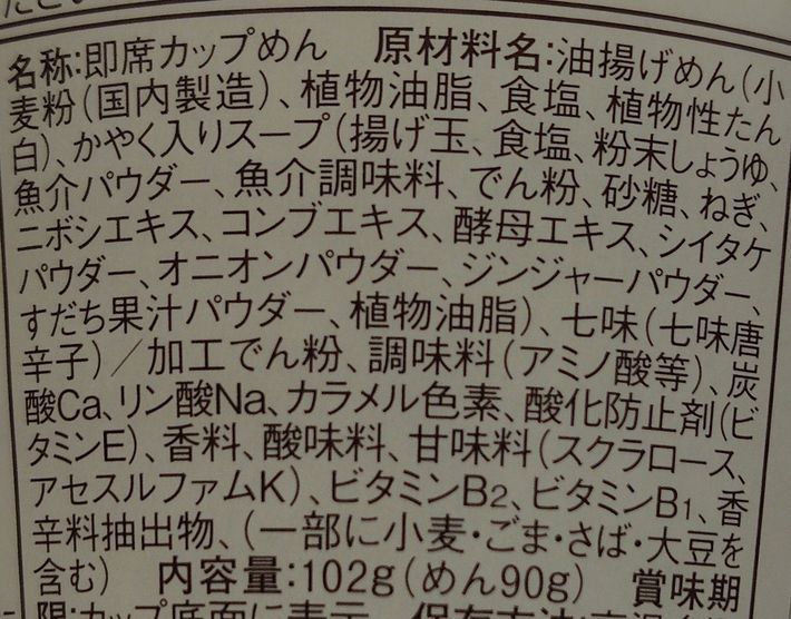 【写真1】あるカップラーメンの原材料表示。「/」以降が食品添加物を示す(出所=『