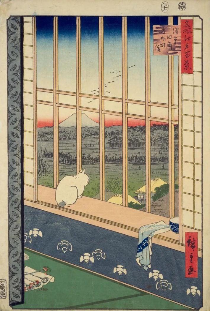 広重『名所江戸百景 浅草田甫酉の町詣』,魚栄,安政4.