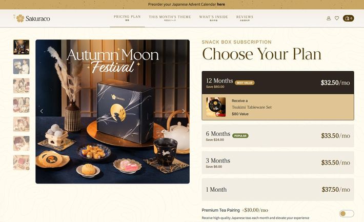 「TOKYOTREAT」の購入ページ。2025年8月は夏祭り、9月は月見と、毎月異なるテーマに合わせた商品が届く(