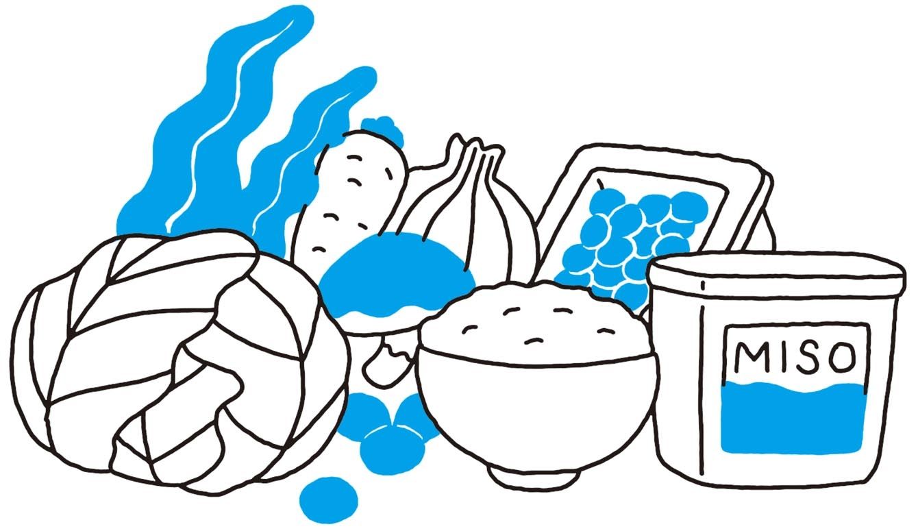 腸内環境を整える“うつぬけ食材6選” 野菜、穀類、豆腐、きのこ、海藻、発酵食品。(出典=『