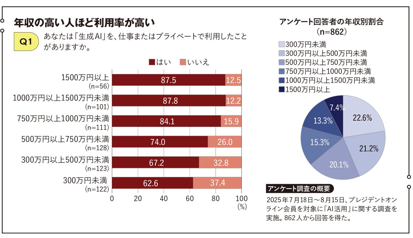 読者862人アンケートで判明! 「年収1500万円以上vs.500万円未満」なぜ稼ぐ人ほどAIを使うのか