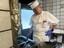 コロッケを揚げるスタッフ