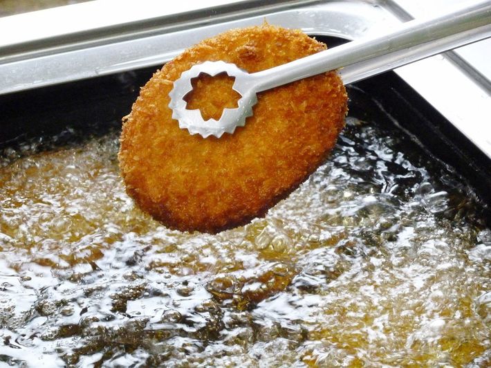 コロッケを揚げる新田さん