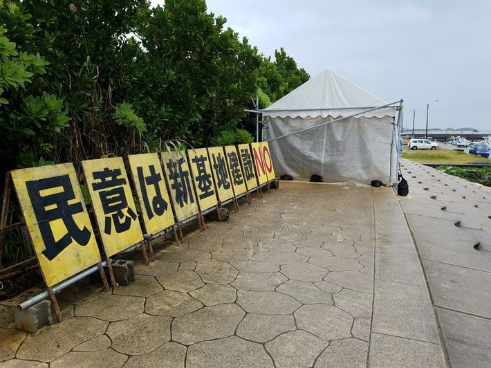 沖縄の「民意は新基地建設NO」と書かれた看板(画像= Hajime NAKANO/CC-BY-2.0/