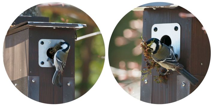朝早くに、森で鈴木さんが撮ったシジュウカラの姿。コケを運び入れ、未来のわが子のため、ふかふかのベッドをつくっていく。
