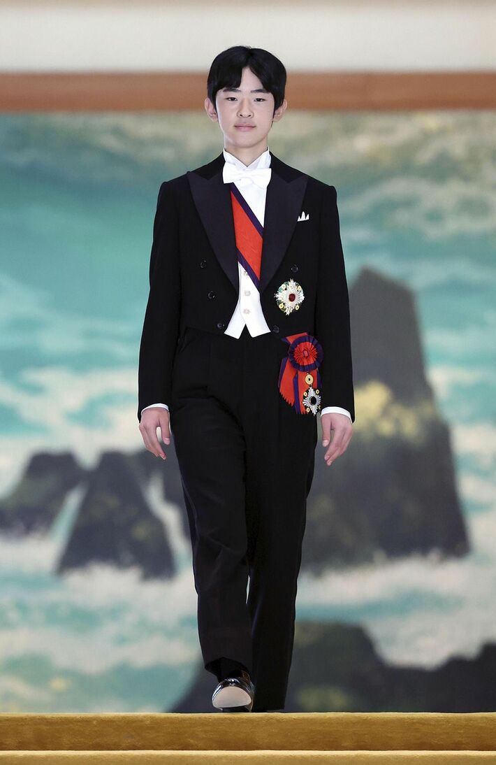 大勲位菊花大綬章をつけられた秋篠宮家の長男悠仁さま=2025年9月6日、皇居・宮殿(代表撮影)
