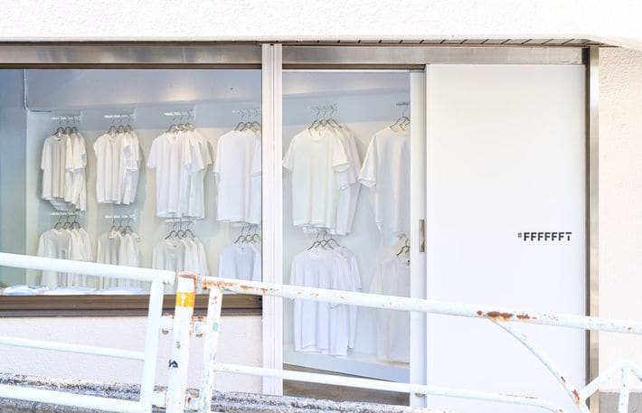 壁一面に白Tが並ぶ#FFFFFFTの店内