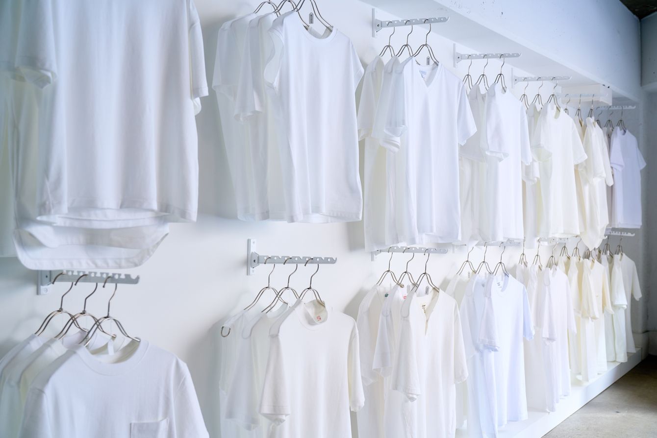 壁一面に白Tが並ぶ#FFFFFFTの店内