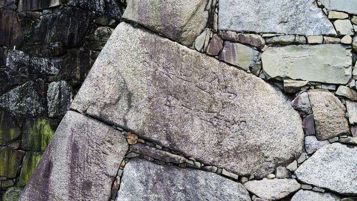 名古屋城大天守石垣内で、「加藤肥後守内小代下総」[加藤肥後守の家臣、小代下総守(小代親泰)]と刻まれた石[写真=Taro Nagoya(名古屋太郎)/CC-BY-SA-4.0/
