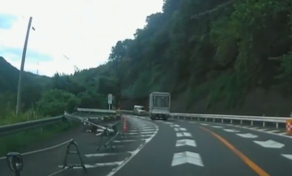 事故直前、センターラインをはみ出したトラック。ドライブレコーダー映像よりキャプチャ